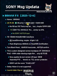BRAVIA 9 II skips 98", may go 115" — no Dolby Vision 2.0.